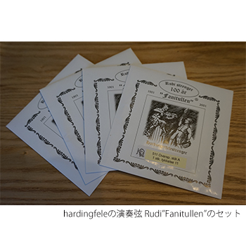 ハーディングフェーレにバイオリンの弦を張るのはテンションが高すぎて楽器に負担をかけると言われています。楽器そのものがバイオリンよりも少しネックが短く作られているからです。また、ハーディングフェーレはバイオリンよりもチューニングを高くすることが今まで一般的でした、近年でこそ、バイオリンのA弦をA音にチューニングすることがありますが、古くから一般的なのはそれよりも長1度高いH(B音)です。この基音をどう取るかというのは、ソロ演奏が基本のハーディングフェーレでは、奏者の好みによって判断されるものです。チューニングを高くすると、曲自体が非常にハイテンションな印象になることが多いです。逆に低くするとリラックスした印象になります。曲調や好みによって、B音よりも高く設定する人も時にはいます。もちろん、複数人で同じ曲を弾く時はチューニングを合わせますが、その場合はB音が取られることが最も一般的です。