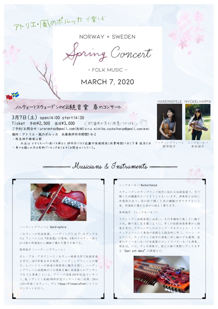 さて、3月7日はニッケルハルパの本田倫子さんとのデュオライブです。共鳴音のとても多いニッケルハルパと、これまた共鳴弦のついたハーディングフェーレ。ノルウェーとスウェーデンの伝統曲をたっぷりお楽しみください。