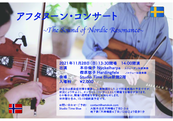 出演: 本田倫子 Nychelharpa / 樫原聡子 Hardingfele